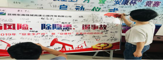 图为2019年6月5日职工踊跃参加“安康杯”、“安全月”启动仪式签名活动