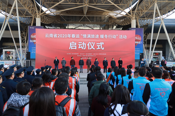 1月10日,2020年春运拉开大幕。上午10点,云南省2020年春运“情满旅途 暖冬行动”活动启动仪式在昆明南部汽车客运站举行。