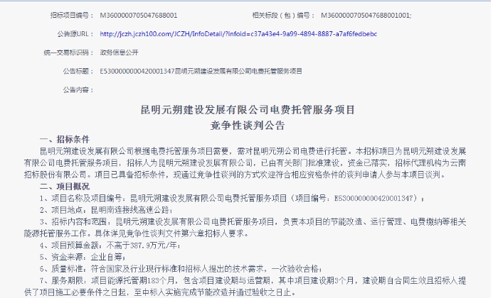 昆明元朔建设发展有限公司电费托管服务项目竞争性谈判公告