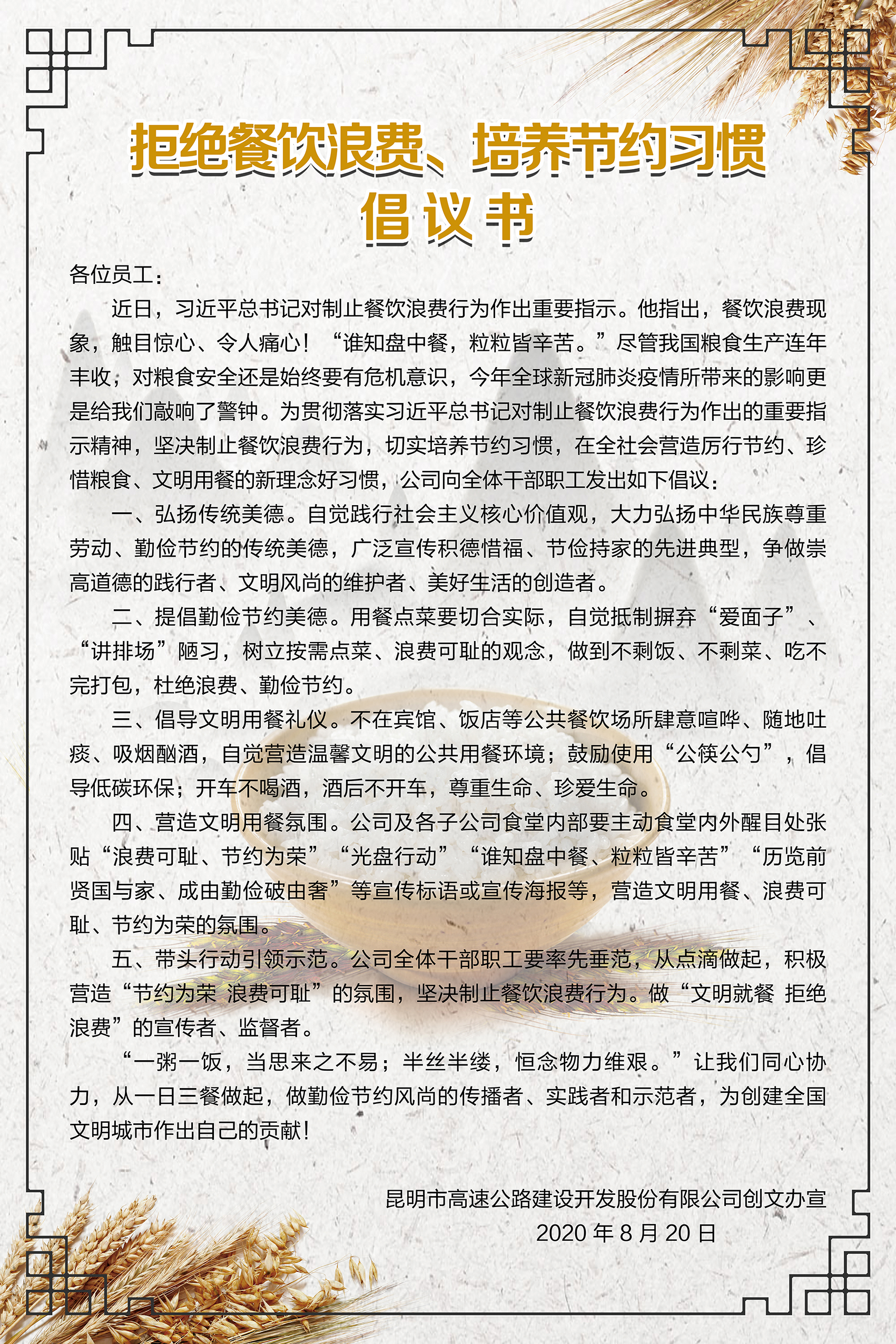 拒绝餐饮浪费、培养节约习惯的倡议书