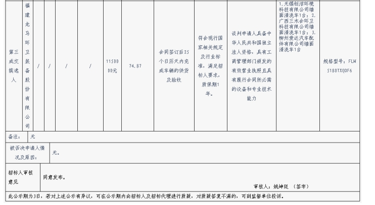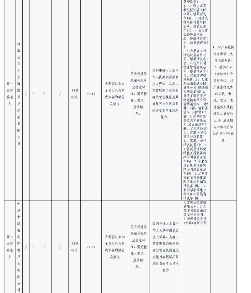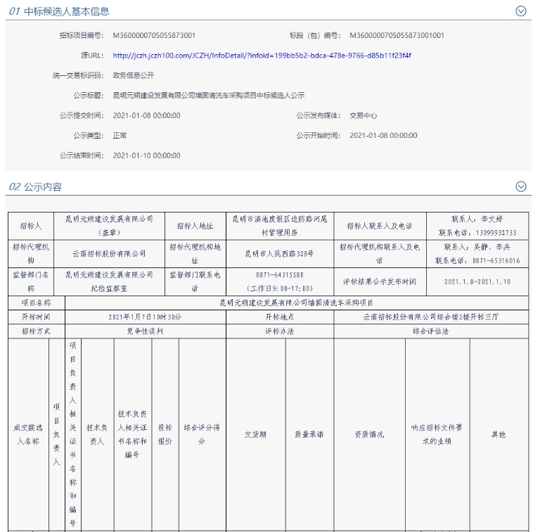 昆明元朔建设发展有限公司墙面清洗车采购项目评标结果公示