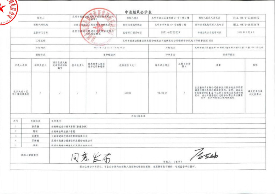 昆明市高速公路建设开发股份有限公司选聘发行公司债券中介机构(律师事务所)项目中标结果公示