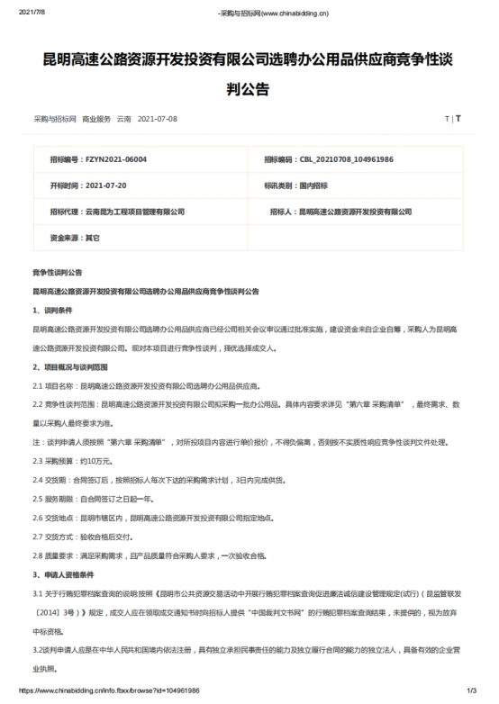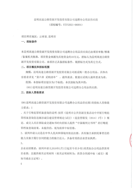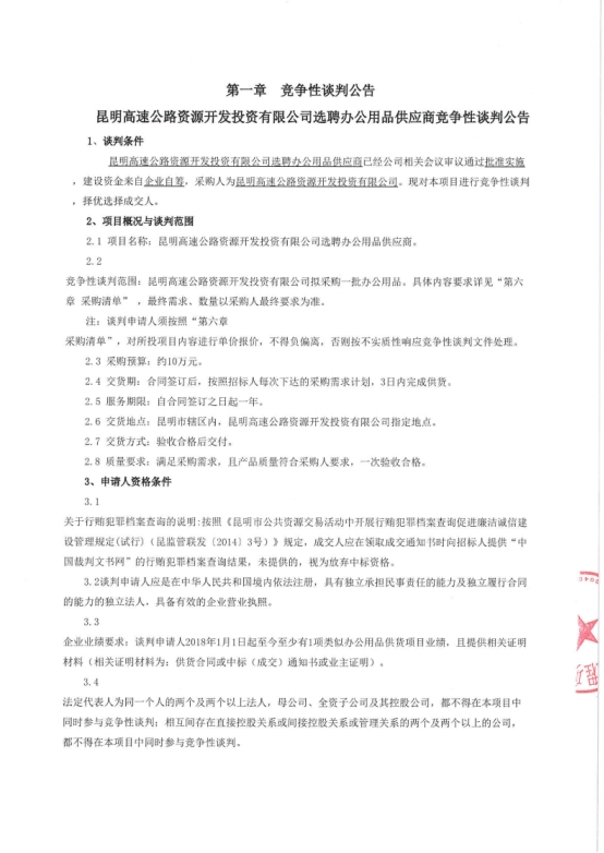 suncitygroup太阳官方网站公路资源开发投资有限公司选聘办公用品供应商竞争性谈判公告