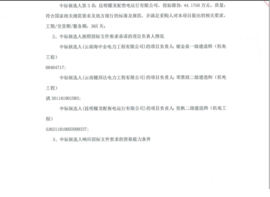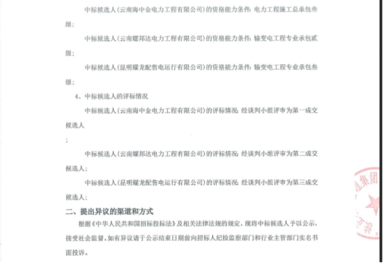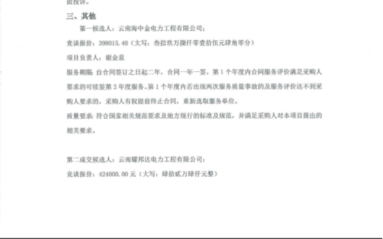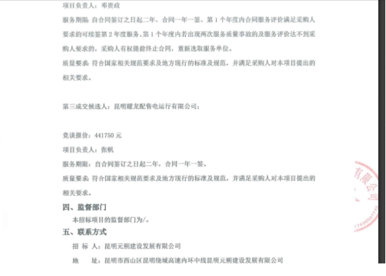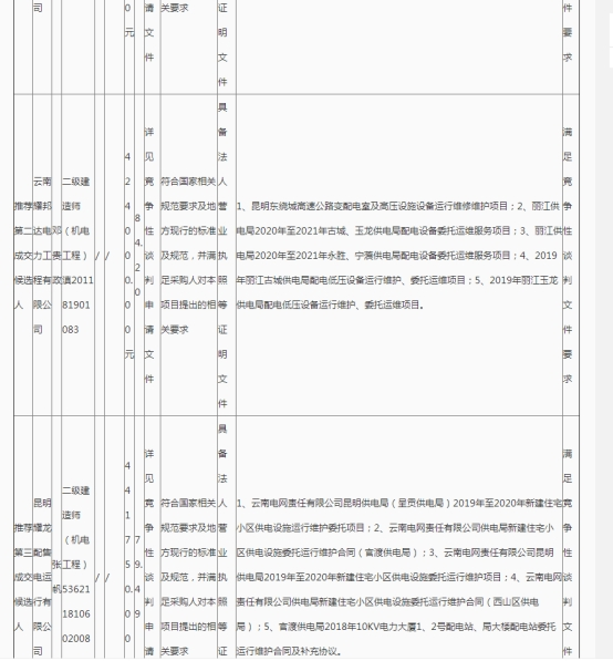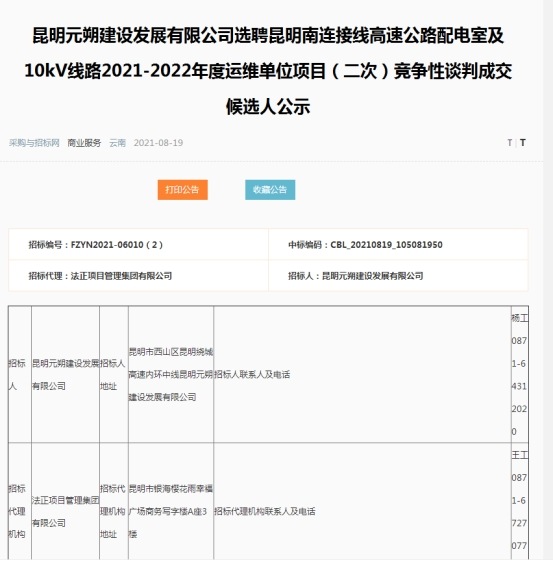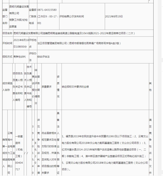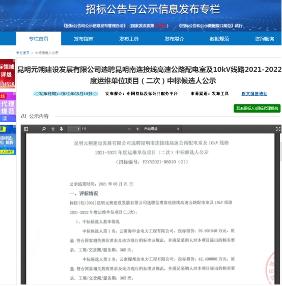 昆明元朔建设发展有限公司选聘昆明南连接线高速公路配电室及10kV线路2021-2022年度运维单位项目(二次)中标候选人公示