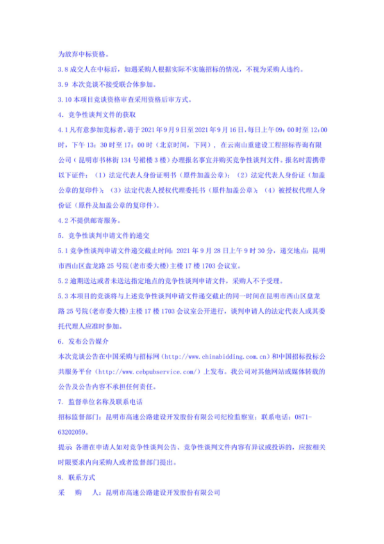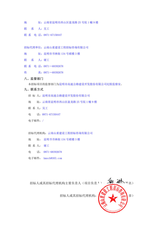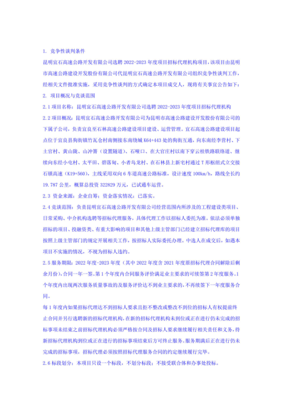 昆明宜石高速公路开发有限公司选聘2022-2023年度项目招标代理机构