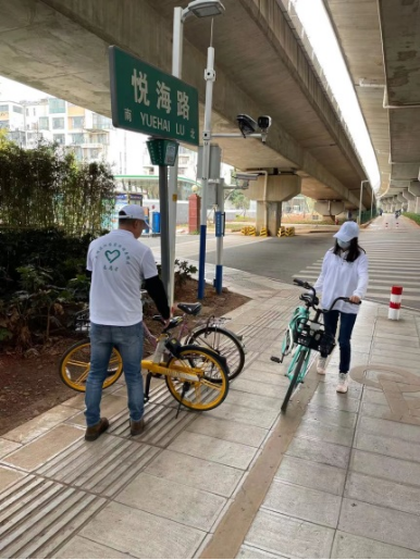10月11日至15日期间,公司累计15名文明城市志愿者,在环湖路、悦海路沿线开展文明志愿服务活动。志愿者们分成小组,以良好的精神风貌、饱满的服务热情,从每天上午8点开始,不怕脏、不怕苦、不怕累,认真清扫垃圾,整理共享单车摆放秩序,并热情地为过往游客、行人指引道路,发放COP15 大会宣传资料。