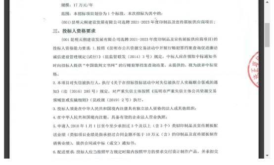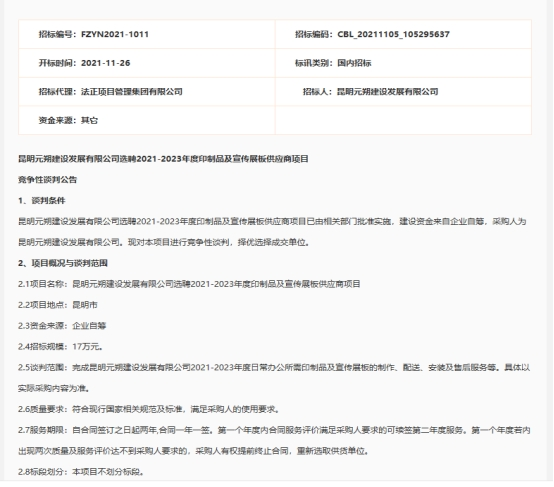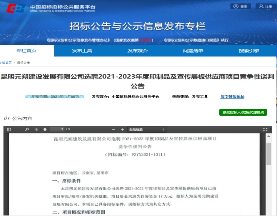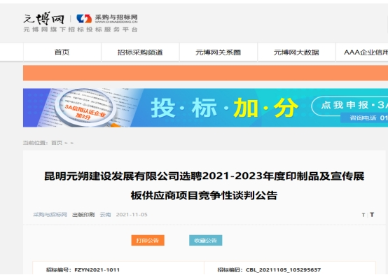 昆明元朔建设发展有限公司选聘2021-2023年度印制品及宣传展板供应商项目竞争性谈判公告