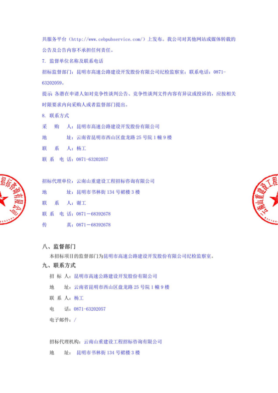 昆明市高速公路建设开发股份有限公司选聘公司经营状况综合分析中介机构竞争性谈判公告