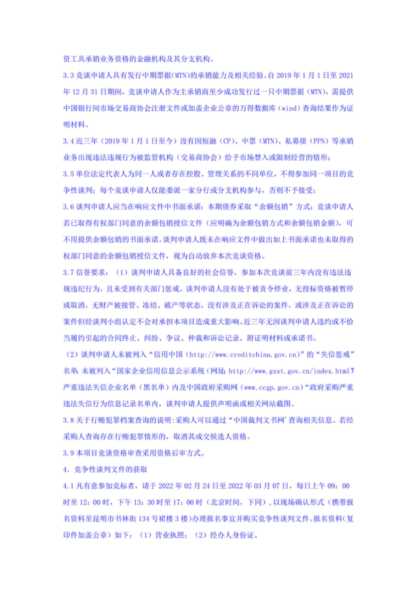 昆明市高速公路建设开发股份有限公司选聘发行中期票据中介机构(主承销商)项目竞争性谈判公告