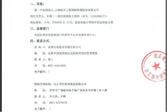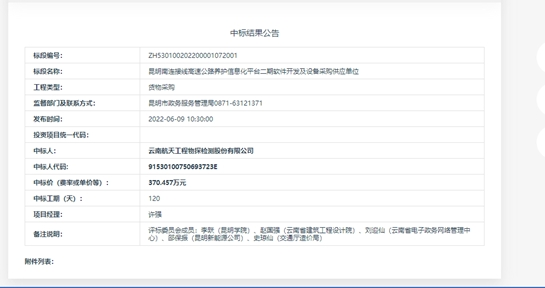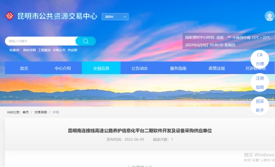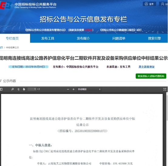 昆明南连接线高速公路养护信息化平台二期软件开发及设备采购供应单位中标结果公示