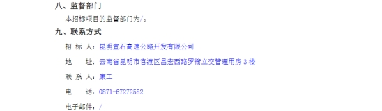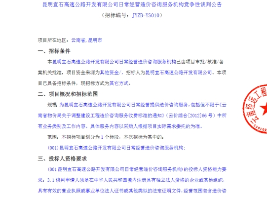 昆明宜石高速公路开发有限公司日常经营造价咨询服务机构竞争性谈判公告