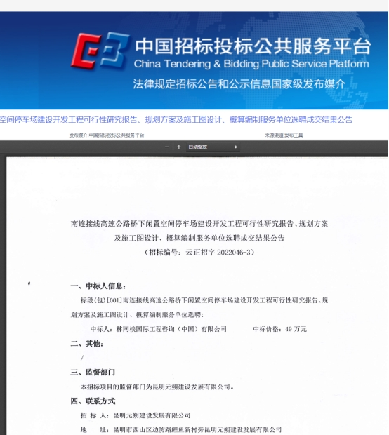 南连接线高速公路桥下闲置空间停车场建设开发工程可行性研究报告、规划方案及施工图设计、概算编制服务单位选聘成交结果公告