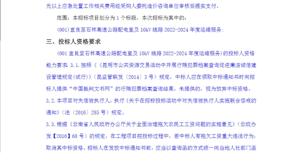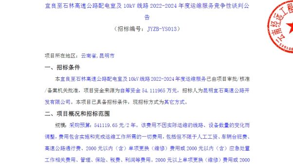 宜良至石林高速公路配电室及10kV线路2022-2024年度运维服务竞争性谈判公告