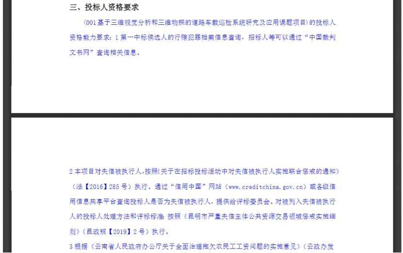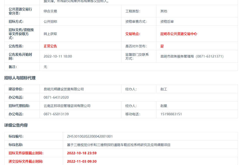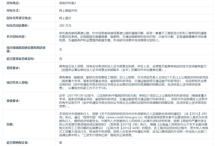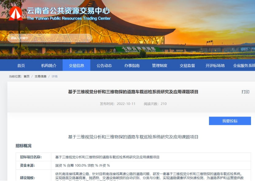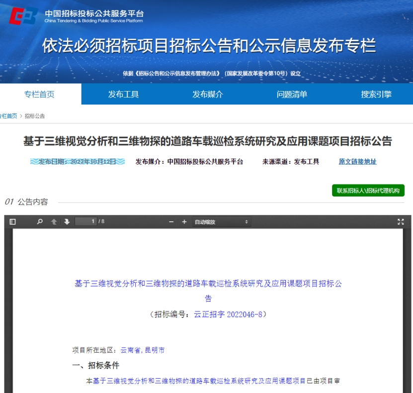 基于三维视觉分析和三维物探的道路车载巡检系统研究及应用课题项目招标公告