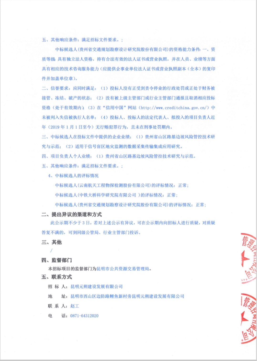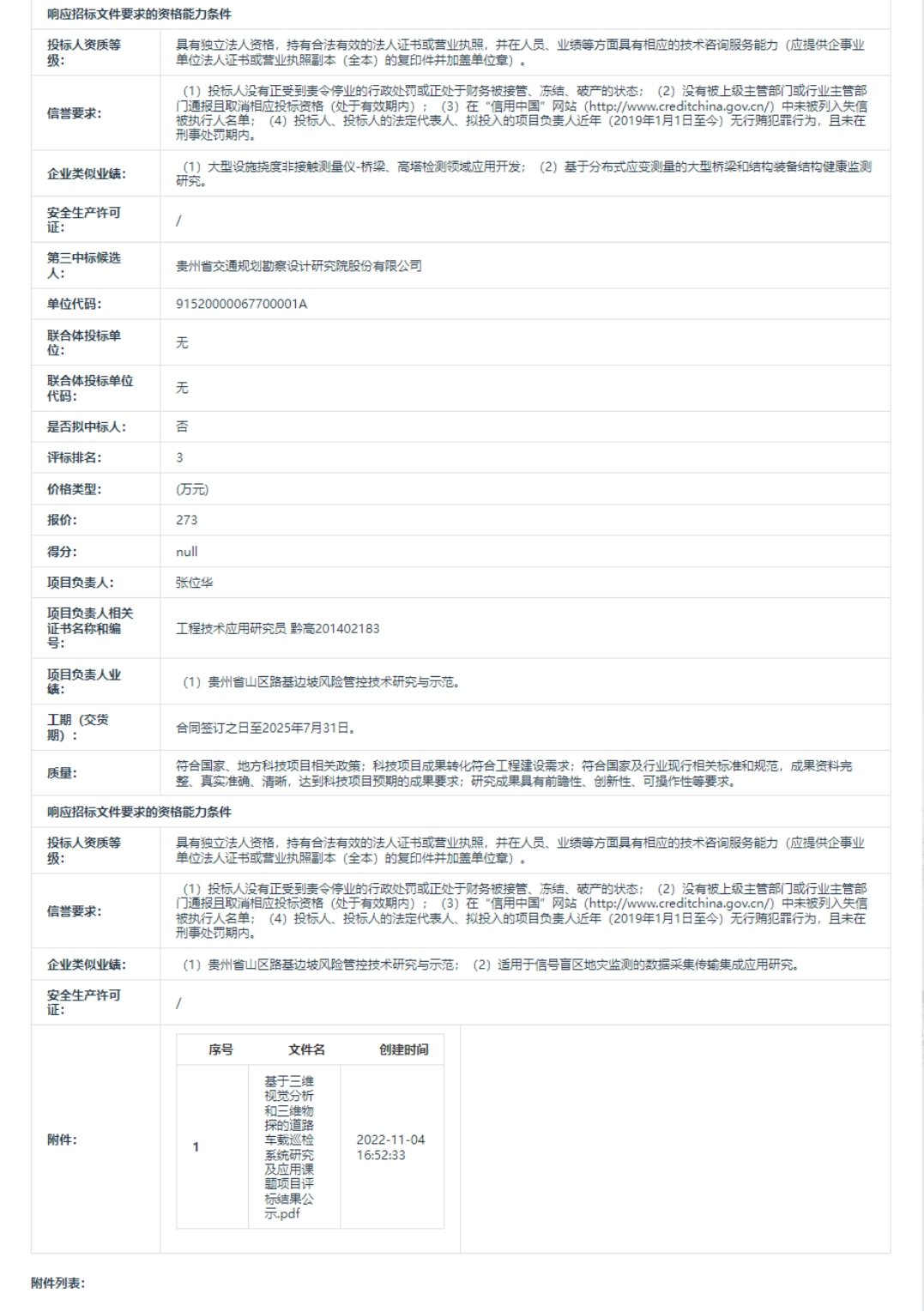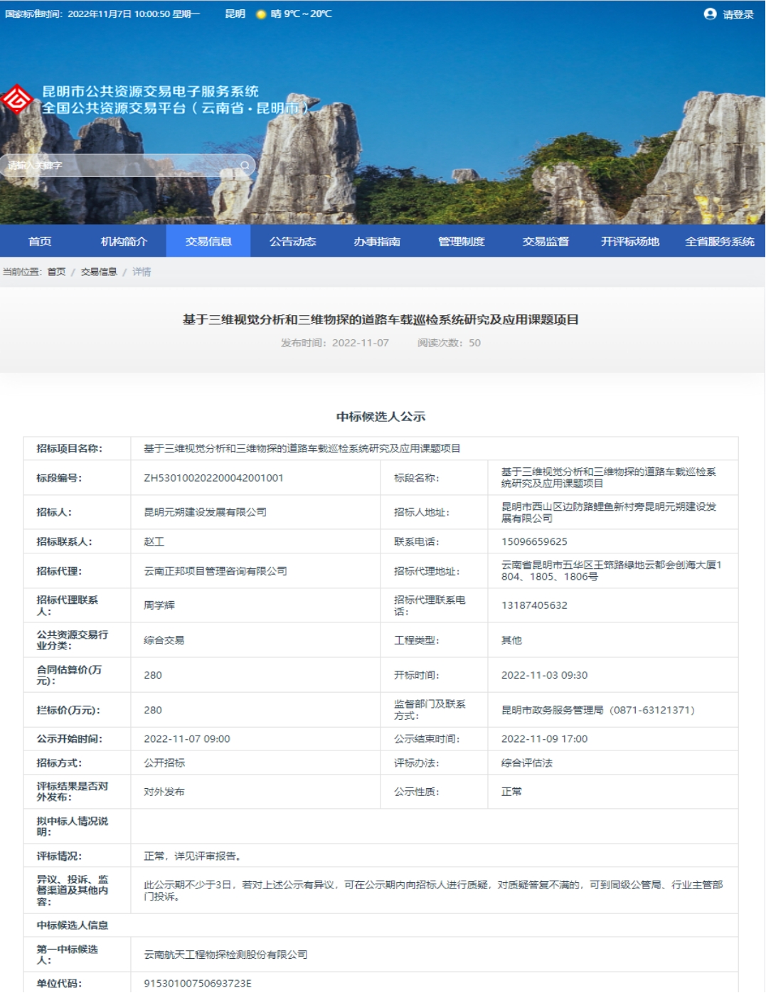 基于三维视觉分析和三维物探的道路车载巡检系统研究及应用课题项目中标候选人公示