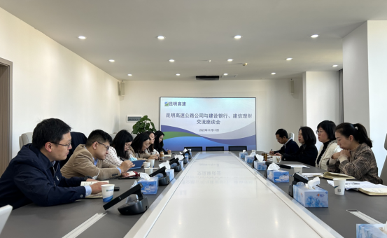 2022年11月11日,建信理财固定投资收益部高级投资经理陈晶、刘大鹏,建设银行云南省分行投资银行业务部副总经理杨增知一行至公司交流座谈,公司副总经理翟婧及相关部门负责人参加座谈。