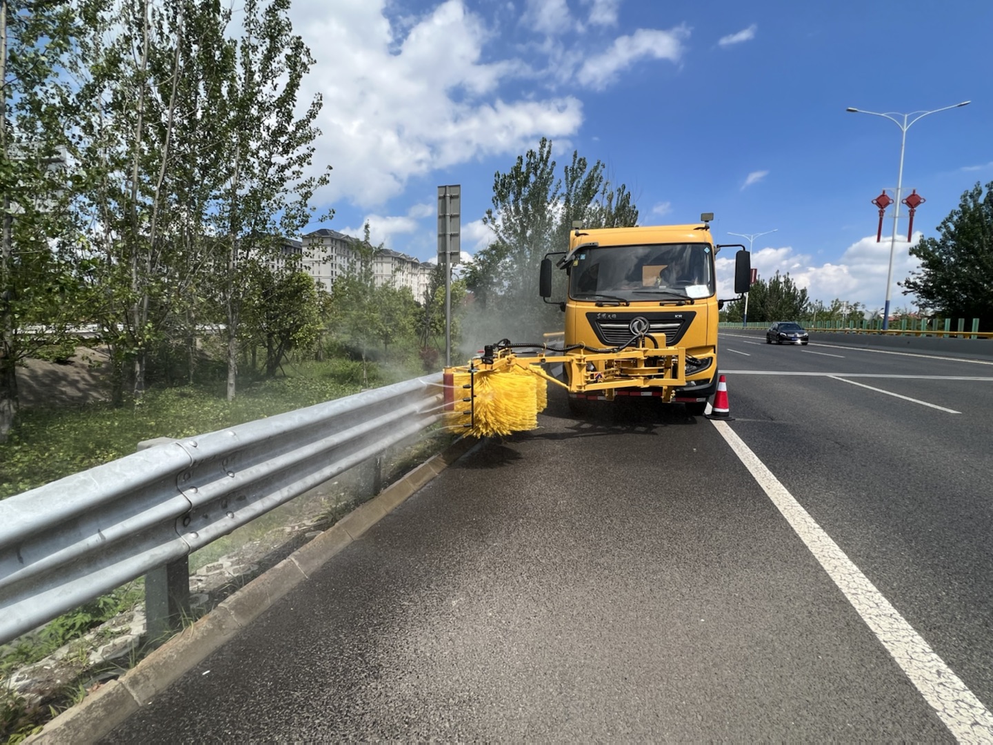 三是结合“智慧路网平台”反馈的路面卫生、绿化情况,元朔公司加大了卫生整治力度,合理调配保洁人员及清扫车,对车流量较大、车速较快、人工不易清扫、易产生扬尘的路段进行机械化冲洗,保证路面干净无污;对沿线绿化养护划分重点区域,特别对杜家营、庄家塘、古渡口、周家村和沿线花箱精细化管理,对全线道路两侧绿化区域进行修剪养护,促进植物良好生长,确保良好的道路景观效果。