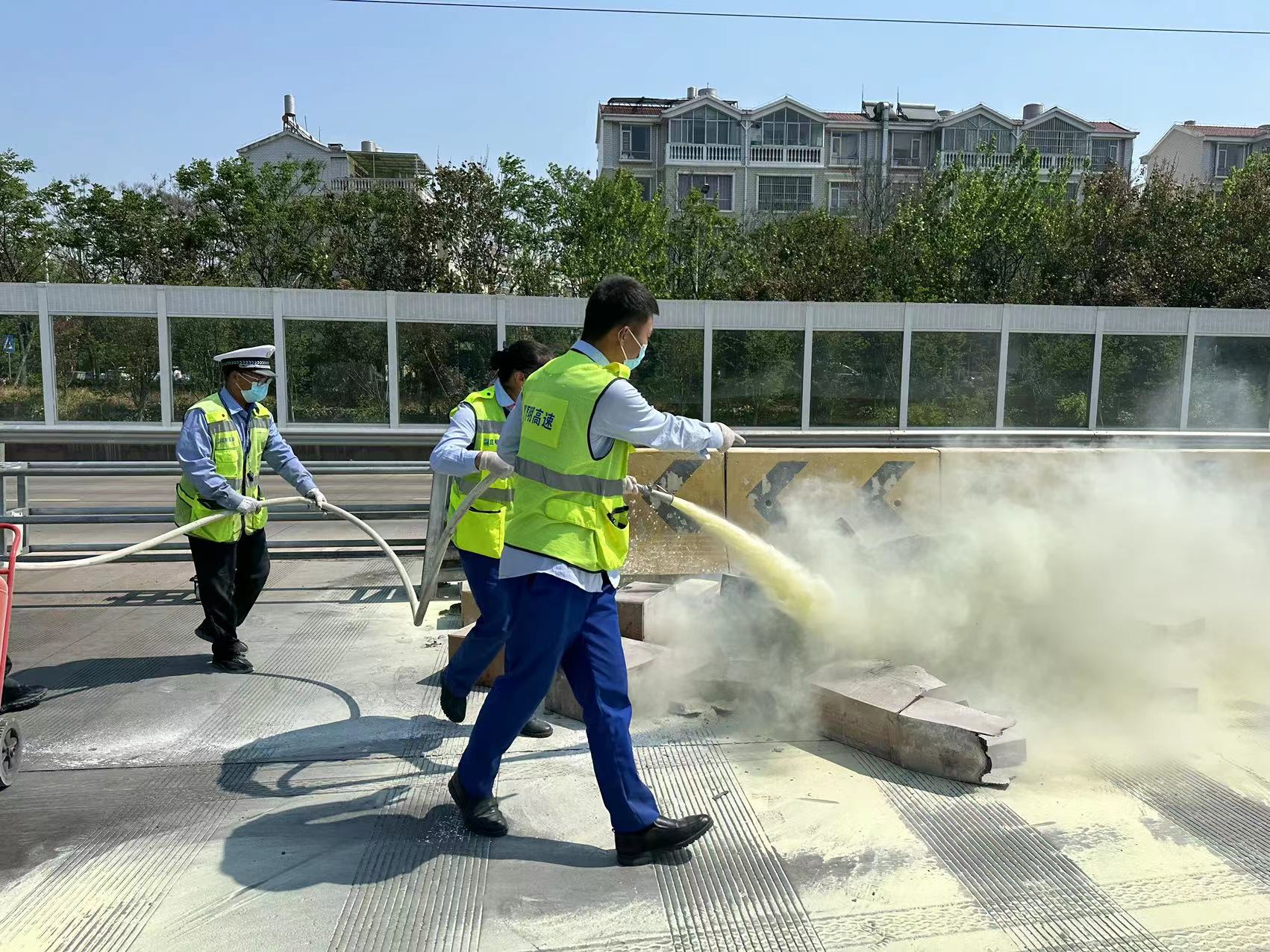 见火被扑灭,驾驶员才缓过神来,连声对现场的工作人员表示感谢“天气炎热干燥,我也不知道货物怎么就起火了,多亏有你们,否则不堪设想,谢谢收费员同志。”