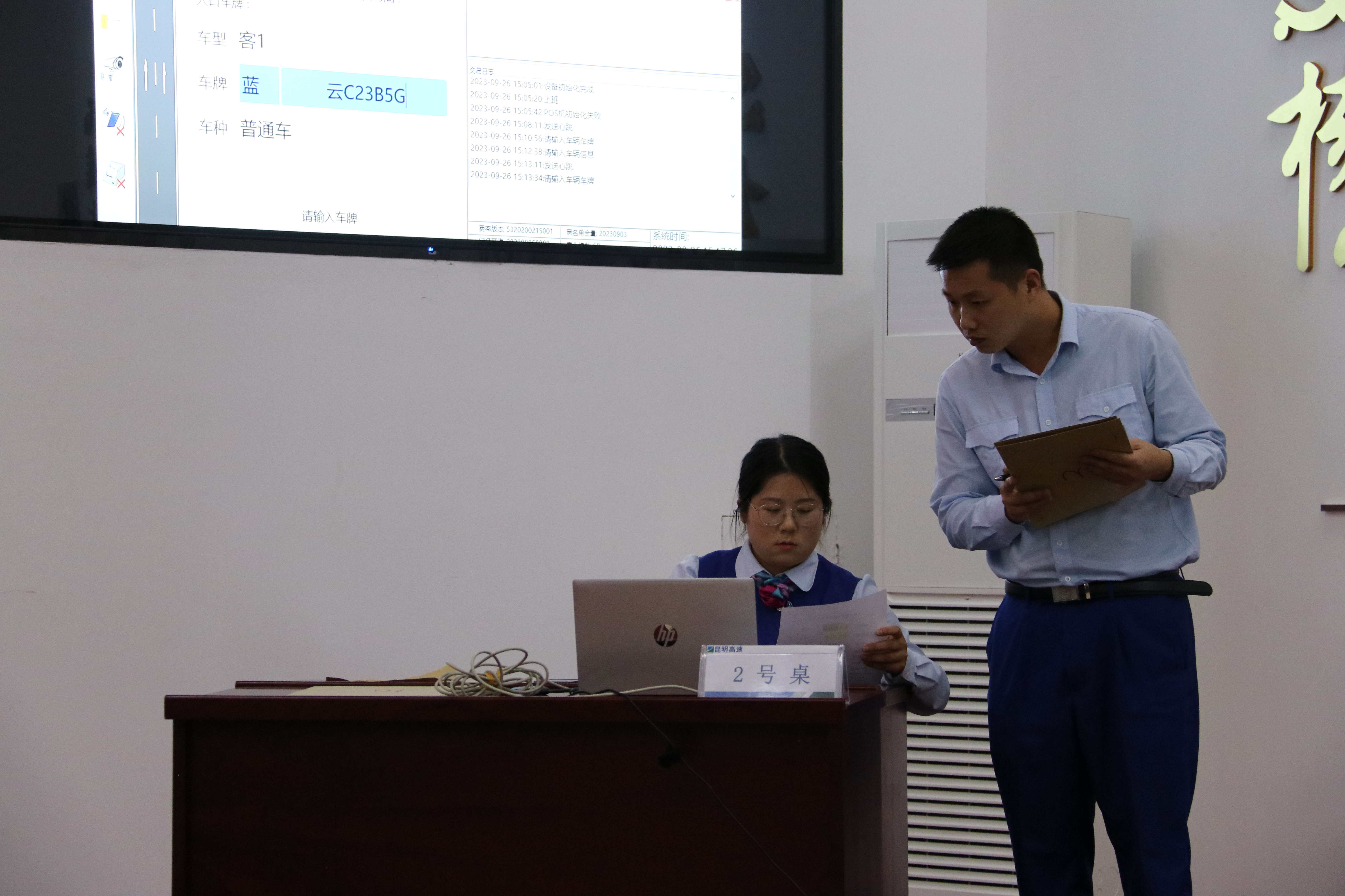 在车辆信息录入项目中,需要参赛选手在2分钟内依次将10辆车的车牌、车型、颜色等车辆号牌全牌照信息录入收费软件中,清脆地键盘声,一行行字符输入系统,操作娴熟、准确无误。