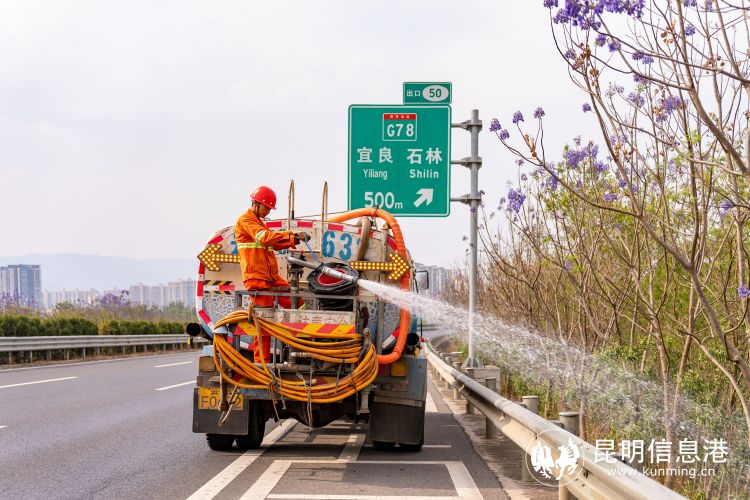 人间四月天,春城春色半城紫。梦幻的“蓝花楹高速”彰显了我市在绿美交通建设方面的决心和成果,更为推动全省交通运输事业的高质量发展注入了新活力。未来,昆明东南绕城公司将以绿化、净化、亮化、美化的绿美价值理念为引领,持续统筹生态、美学、人文、经济、生活等要素,进一步提升绿美交通颜值,聚力打造“六个春城”,助力绿美春城建设迈出新步伐,奋力开创昆明社会主义现代化建设新局面。(昆明信息港 记者袁瑶溪 毕勇)