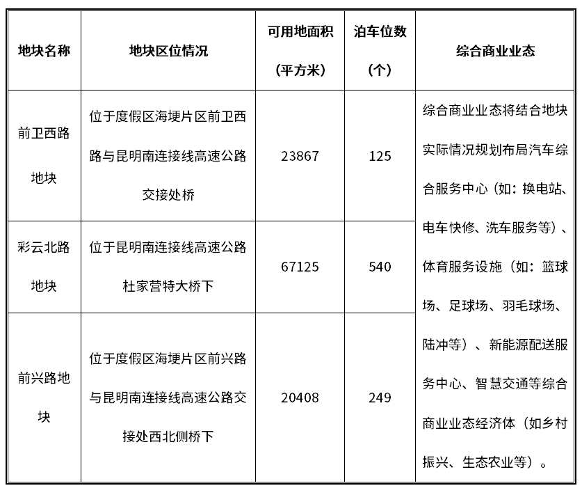 2.1.3合作开发内容:昆明南连接线高速公路桥下5个空置场地主要围绕公共停车场+充(换)电站+预留场地综合商业业态(三大模块)的方式分期投入建设并陆续开发。第一期为5个地块公共停车场基础设施建设工程;第二期为地块服务配套提升、充电站扩增、换电站建设及预留空地综合商业业态开发。