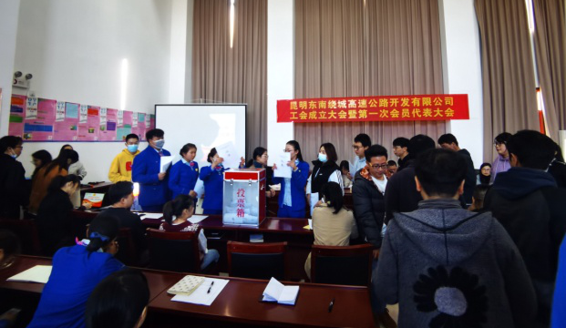 11月19日,昆明东南绕城高速公路开发有限公司召开工会成立大会暨第一次会员代表大会,会议通过无记名投票选举产生第一届工会委员会委员、经费审查委员会委员、女...