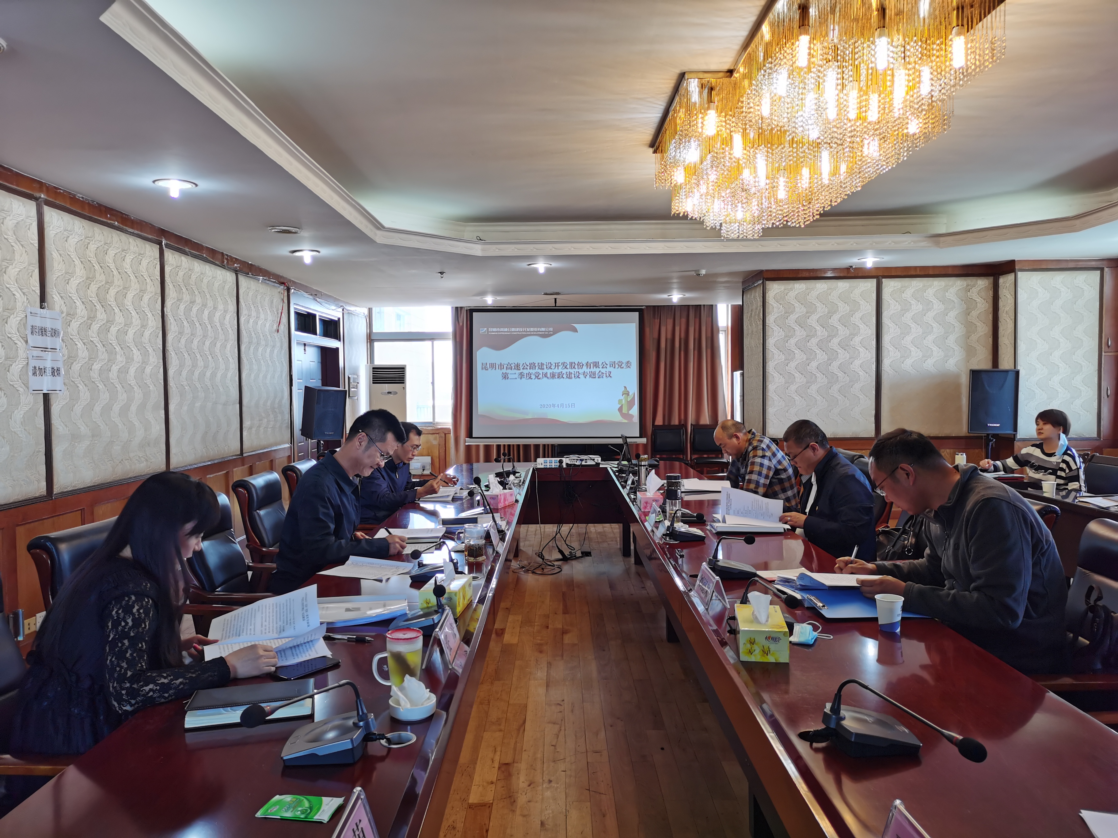 - 为进一步推进全面从严治党,落实党委主体责任,2020年4月15日,公司党委召开2020年第二季度党风廉政建设工作专题会议,公司党政领导班子成员参加会议。
