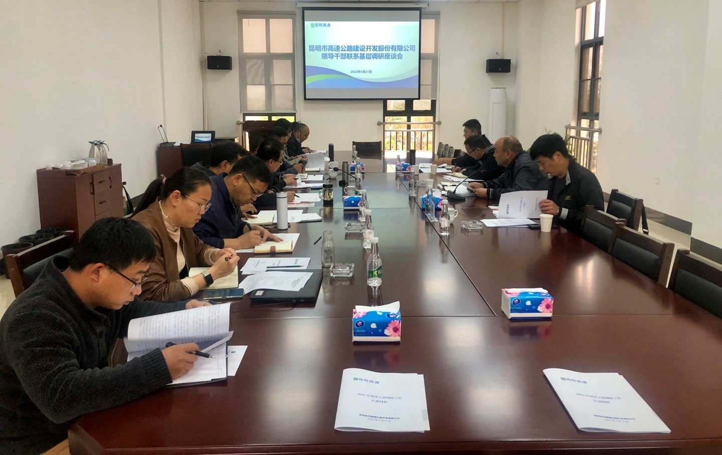 4月21日,suncitygroup太阳官方网站党委委员、总工程师、工会主席杨新红,东南绕公司董事长张建林带队至宜石公司开展“领导干部联系基层”调研工作。
