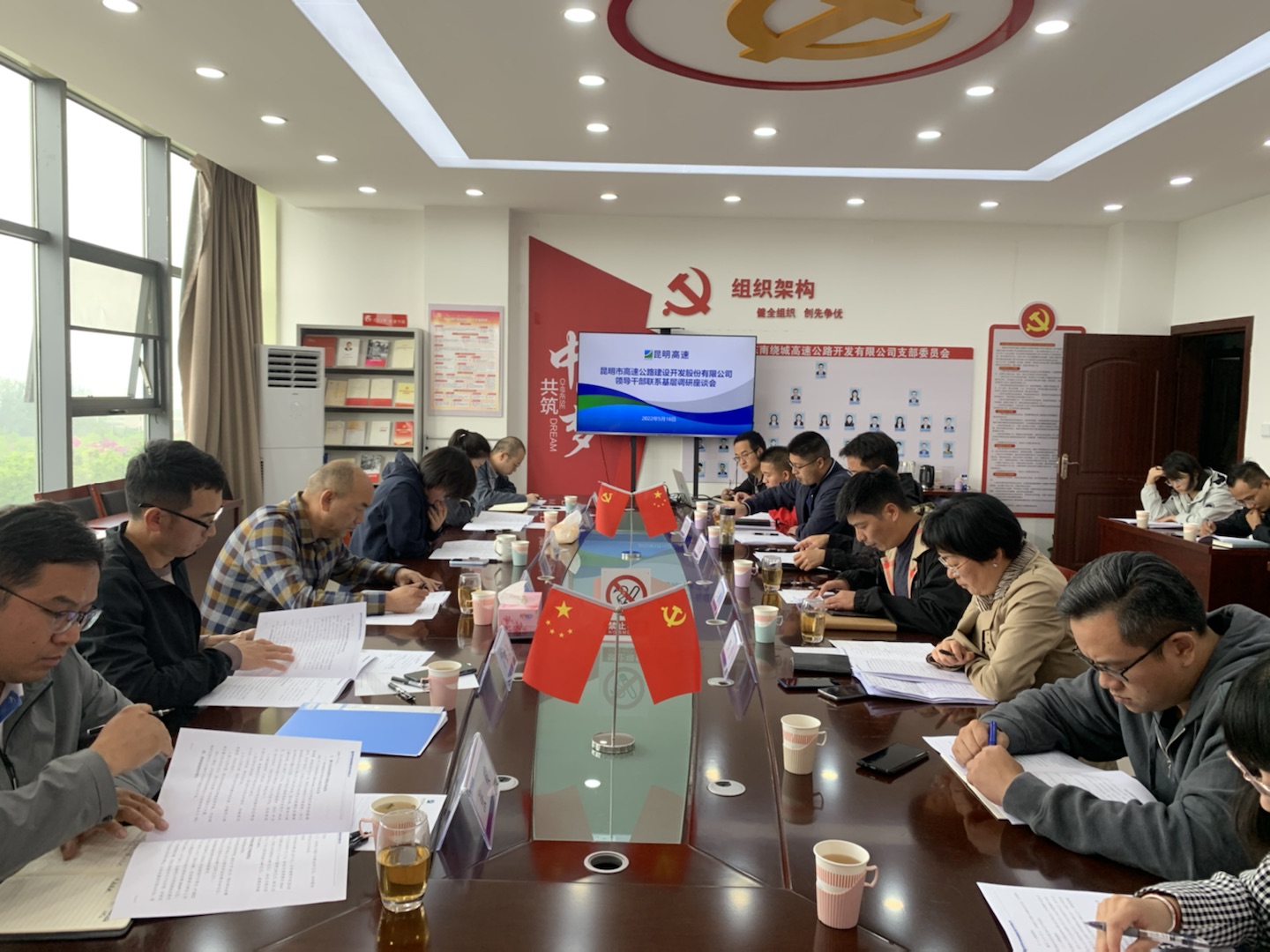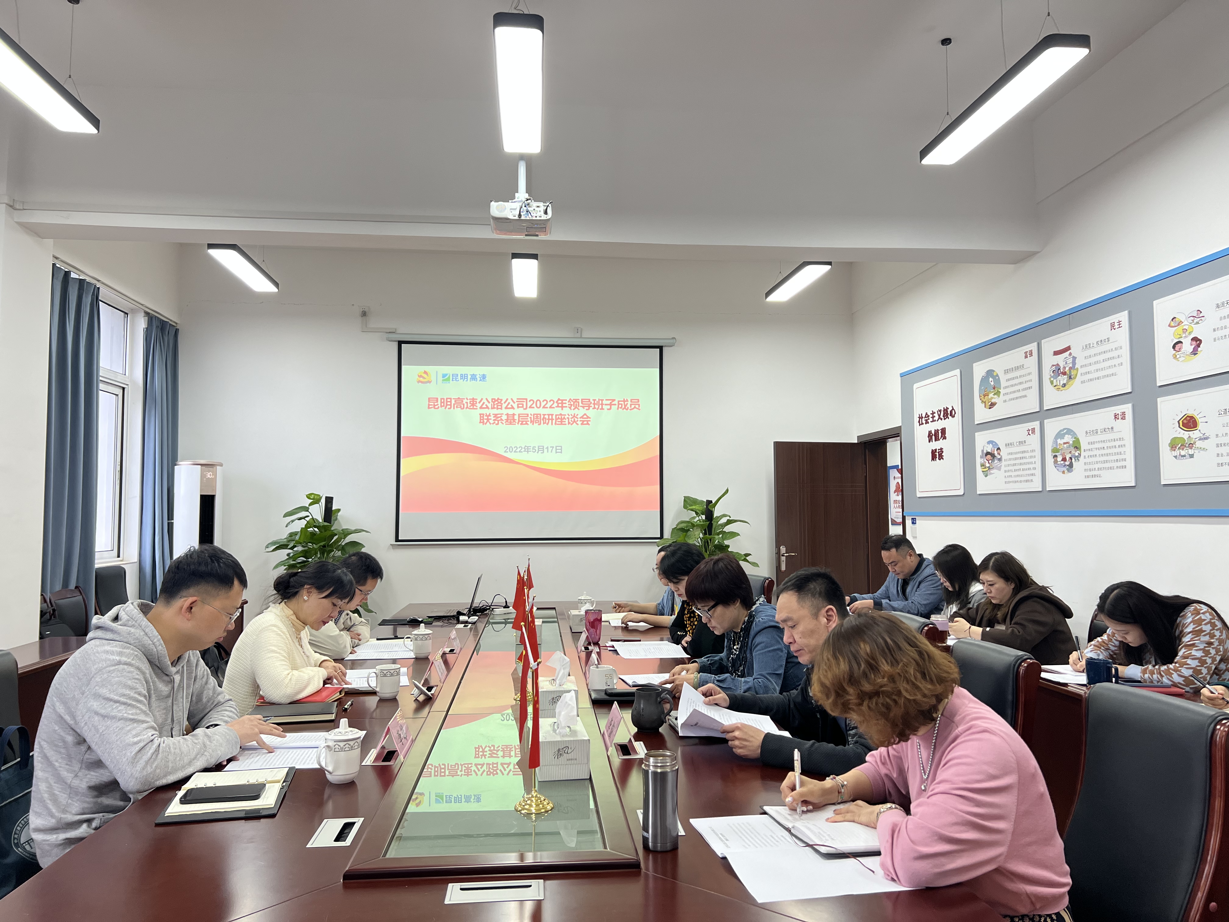 5月12日,suncitygroup太阳官方网站党委书记、董事长马东山,党委委员、总工程师、工会主席杨新红带队至东南绕公司、宜石、石泸公司开展领导班子联系基层调研工作。