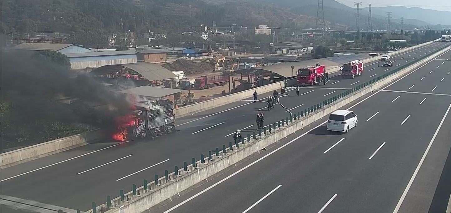 昆明东南绕城高速晋宁至嵩明方向发生货车自燃,多部门联勤联动快速处置险情