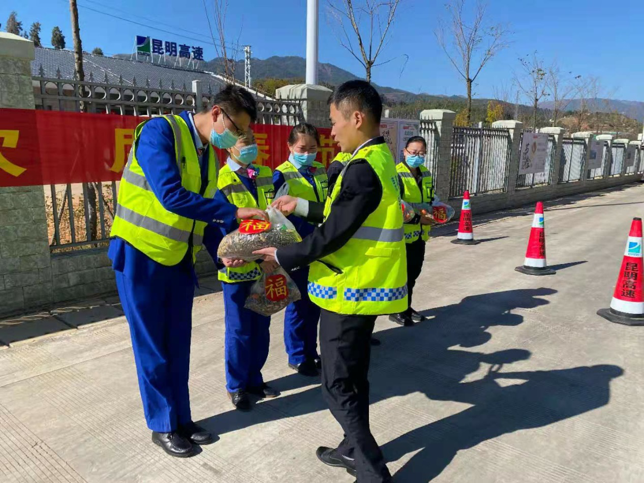 春运期间,昆明杨林南收费站在入口安全区域处特设文明服务岗,以便提前了解驾乘人员所遇到的困难及时协助解决或为驾乘人员提供不时之需。